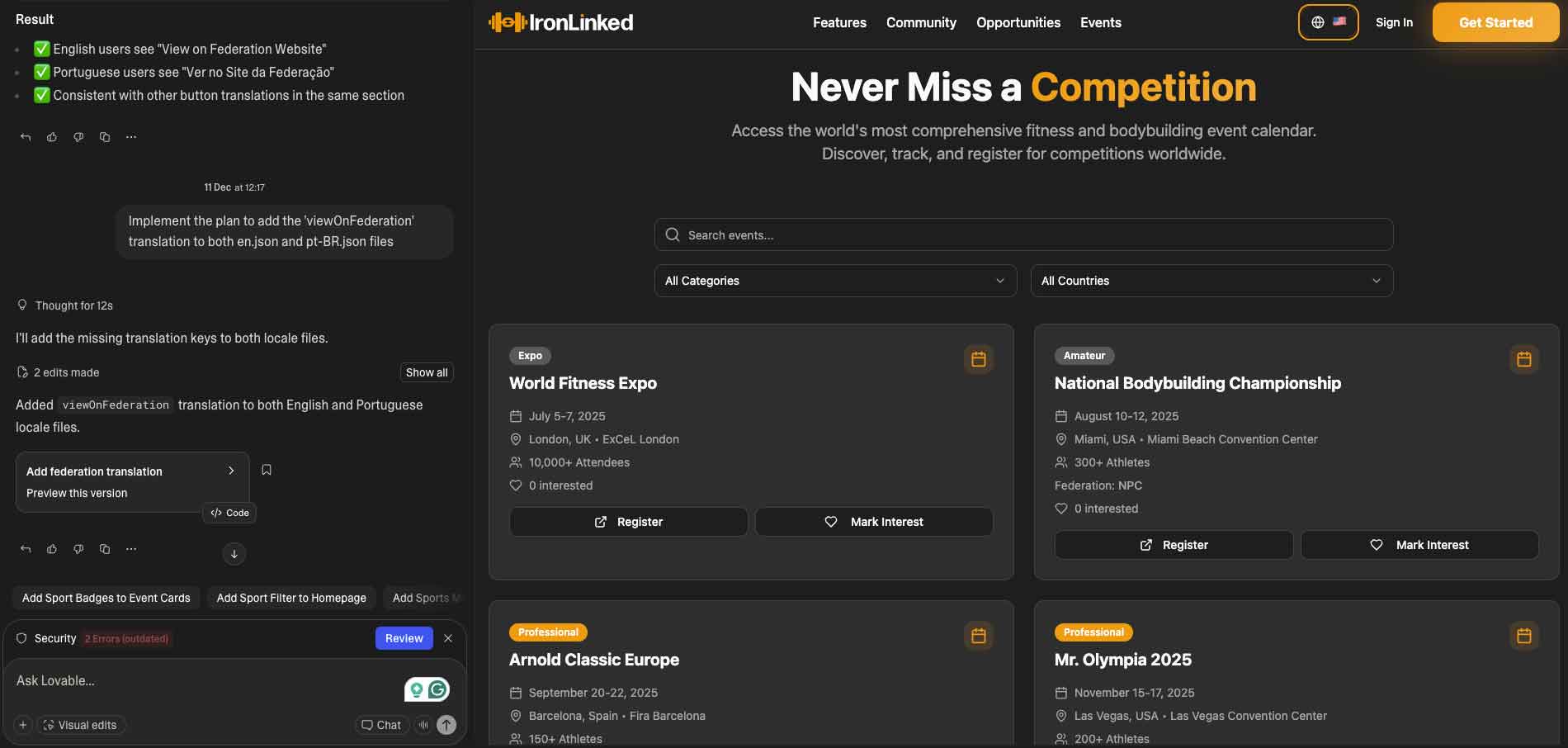IronLinked is a professional networking platform created for athletes, coaches, brands, gyms and federations in the fitness and bodybuilding ecosystem. I led the full UX and product process, from problem definition and research to visual design, flows and the MVP launch.